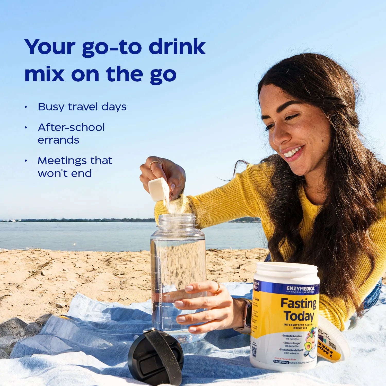 It’s not like a smoothie or protein shake. It’s not juice, either. So what does Fasting Today taste like? Think of this fasting drink mix like a rich, tropical-flavored water that does more – delivering essentials to help you feel your best during the hours between meals. Reach for it before those 5 a.m. workouts, when the school pick-up line isn’t budging and ahead of meetings that you know won’t end on time!